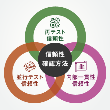 人事アセスメントを開発する際に開発事業者は概ね以下3つの方法で信頼性を確認します。