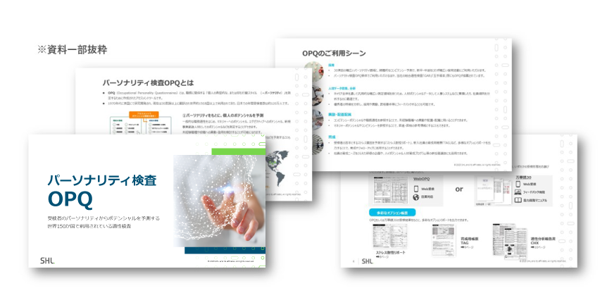 OPQ(Occupational Personality Questionnaires)とは、受検者のパーソナリティの傾向から様々なポテンシャルを予測する、SHLが世界150か国でご提供しているアセスメントツール(適性検査)です。採用・育成・選抜・配置・異動など、あらゆる人事場面における判断を科学的にサポートします。詳細は、ダウンロード資料をご覧ください(全12ページ)。