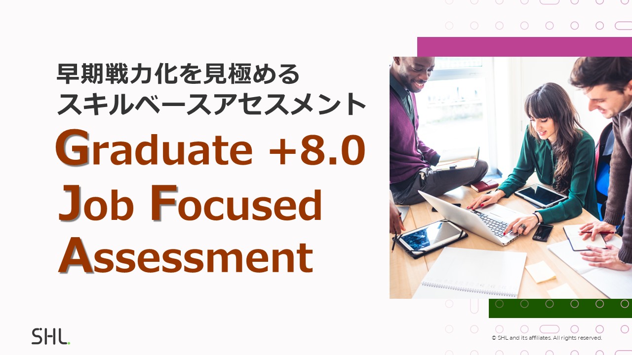 本ウェビナーでは、新商品であるスキルベースアセスメント「Graduate +8.0 Job Focused Assessment」を徹底解説。スマホ・タブレットに完全対応し、わずか30分程度でAI時代に必要とされる「パワースキル」を測定。面接や入社後の育成にも活用できるレポートをご紹介しながら、早期戦力化を見極める新世代の適性検査をご紹介します。